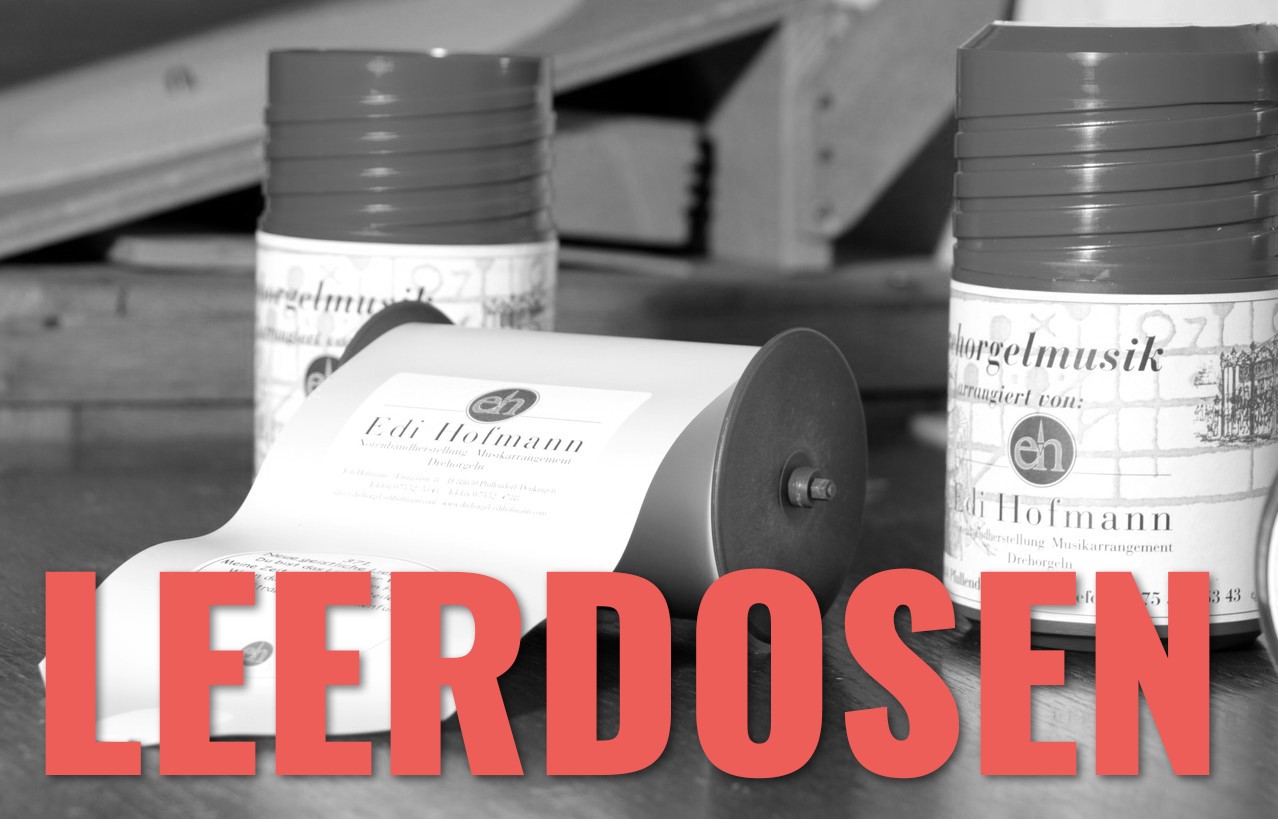Leerdosen - zur sicheren Aufbewahrung der Notenrollen, erhältlich in unterschiedlichen Größen: - 20er Tonstufe - 26er Tonstufe - 28er Tonstufe - 31er Tonstufe - Typ Schlemmer
